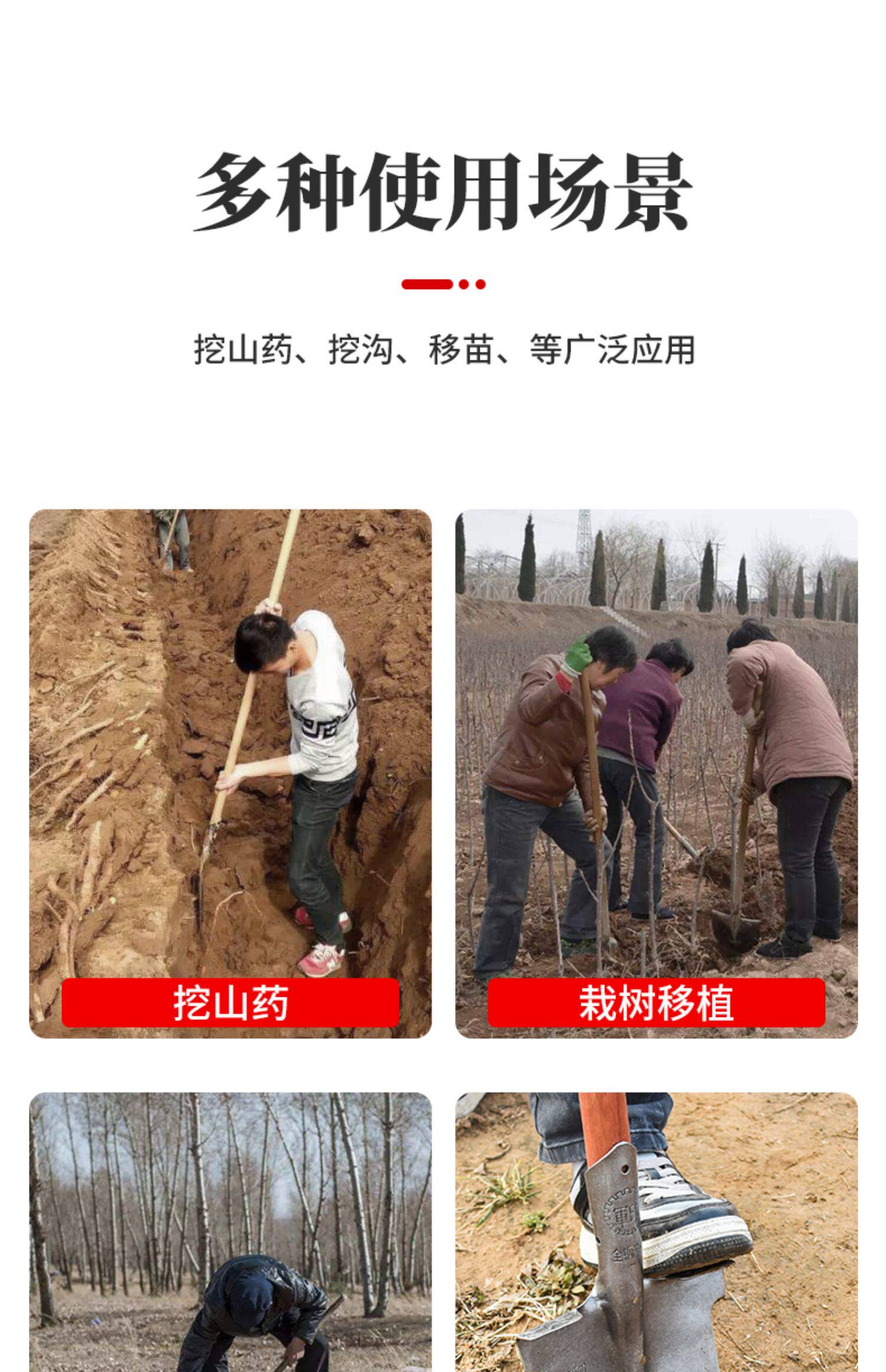 军印钢锹尖铲铁锨铁锹锰钢加厚木柄挖树专用锹农用挖土户外窄铲子