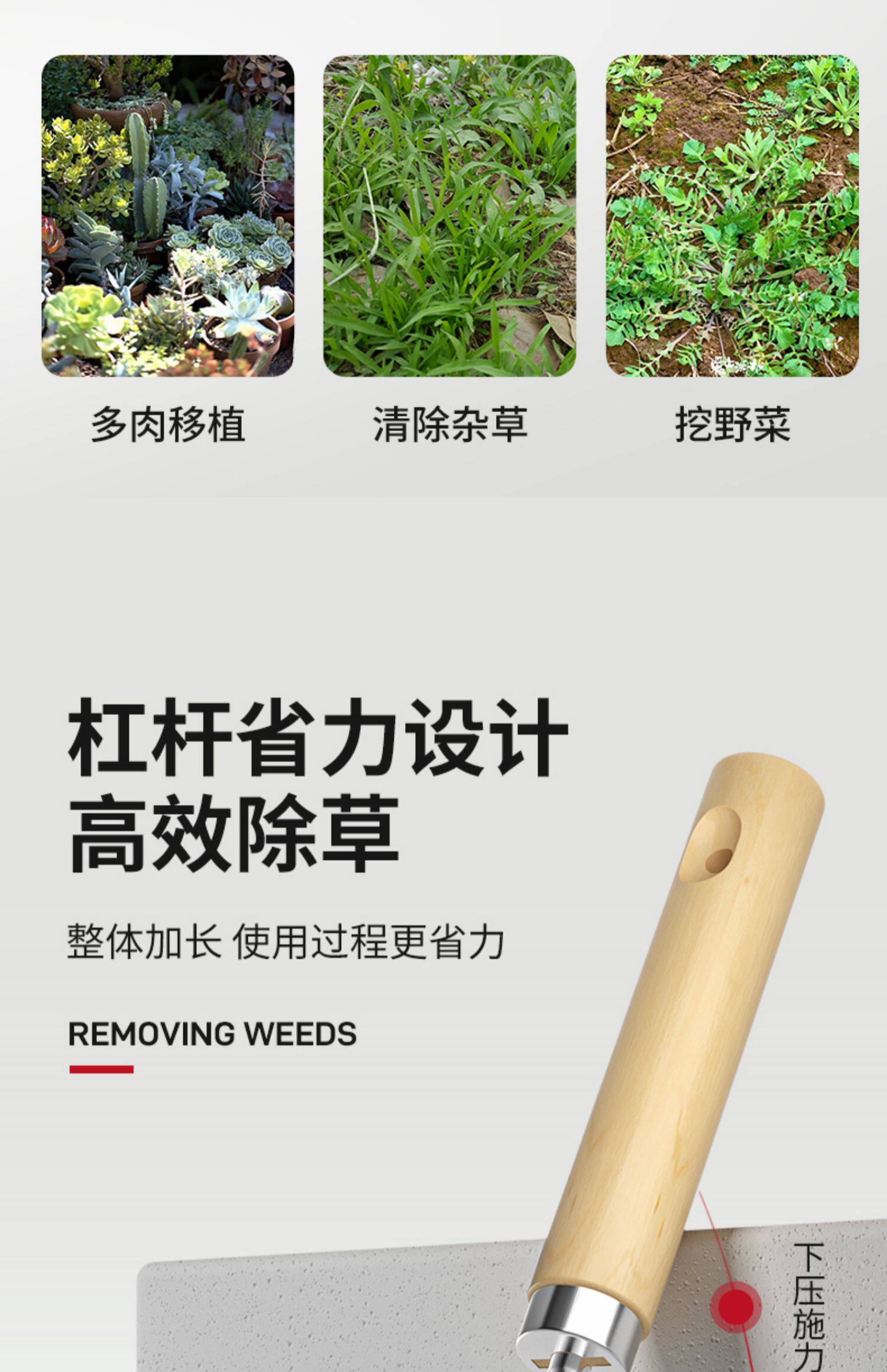 颜色分类:不锈钢木柄拔草器(挖野菜神器) 【2把装】不锈钢木柄拔草器(挖野菜神器)
